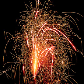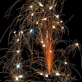 Поток золотых искр, шуршащих звездочек, синих и зеленых огней; Поток трещащих искр и оранжевых огней; Поток красных, зеленых огней и разлетающихся серебряных искр; Поток красных огней и шуршащих серебряных звездочек; Синее пламя в основании и поток золотых звездочек; Поток красных, зеленых и разлетающихся серебряных огней.