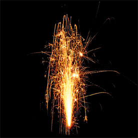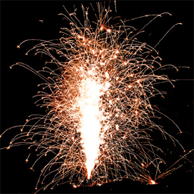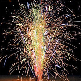 Красное пламя в основании, поток золотых звездочек; Поток серебряных искр; Поток золотых искр, красных, зеленых и трещащих разлетающихся огней; Поток золотых искр, зеленых, красных и шуршащих серебряных огней.