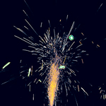 Поток белых, золотых, синих, разноцветных мерцающих огней с треском.
