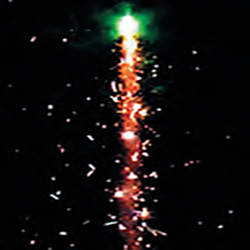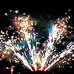 9 эффектов: поток красных, жёлтых, голубых и разлетающихся серебряных огней, поток синих, фиолетовых и разлетающихся трещащих огней, веер – зелёное пламя в основании и три потока серебряных огней, веер – два потока зелёных, фиолетовых огней и разлетающихся золотых трещащих искр, веер – красное и фиолетовое пламя в основании, три потока из серебряных искр, жёлтых, синих и разлетающихся трещащих огней, веер – потоки разлетающихся трещащих, синих, красных, фиолетовых, зелёных огней, веер – потоки серебряных искр, выстреливается золотая трещащая трасса с цветной кометой, выстреливается букет из серебряных трасс.