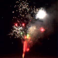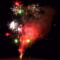 Поток золотых шуршащих искр, серебряных трещащих разрывов с красными и желтыми огнями.