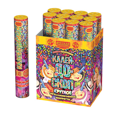 Выстреливает круглое металлизированное конфетти.