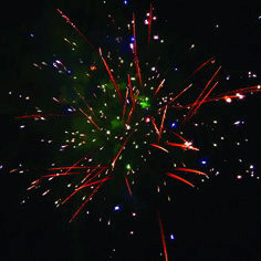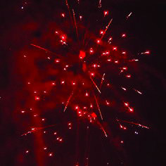 Цветные звезды разрываются красными, зелеными звездами и оранжевыми мерцающими хвостами. Оранжевые кометы разрываются оранжевыми кометами с мерцанием на концах и синими звездами с треском. Разноцветные разрывы. Зеленые звезды разрываются зелеными, синими сферами с мерцанием. Золотистые кометы разрываются красными мерцающими звездами, ниспадающими нитями.