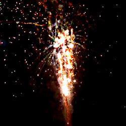 9-10. Выстреливает ЗАЛП: Кометы с трещащими хвостами разрываются в облако треска (трещащая хризантема) Множество серебряных ниспадающих нитей (парча) и красно- зелено- синяя сфера (пион)