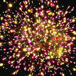 6. Зелено- фиолетовые звезды с пышными хвостами (кокос) и облако треска (трещащий дождь)