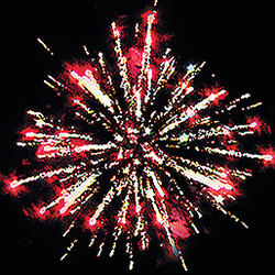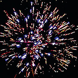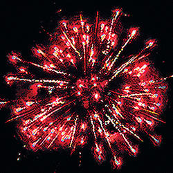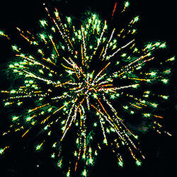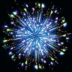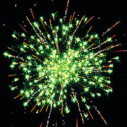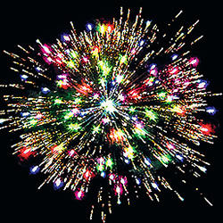 Комбинированный фейеррверк с калибрами зарядов от 20 мм до 30 мм. 14 эффектов. Разноцветные кометы, серебряные трассы разрываются сферами из: