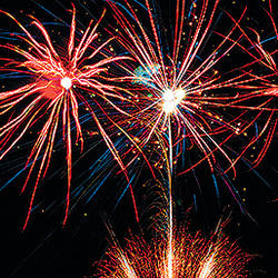 11. золотых форсов с мерцающими серебряными искрами с красными огнями на концах;