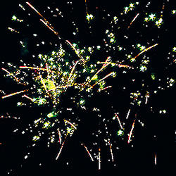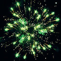 10. серебряных форсов с зелеными огнями на концах и множества трещащих золотых сфер (веер W);