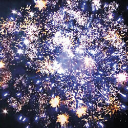 7. Множество серебряных ниспадающих нитей (парча) и облако треска (трещащий дождь);