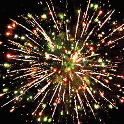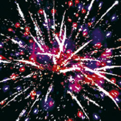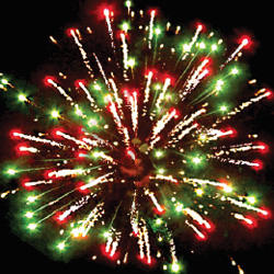 7. Красные звезды с хвостами (волна), зеленые огни и треск