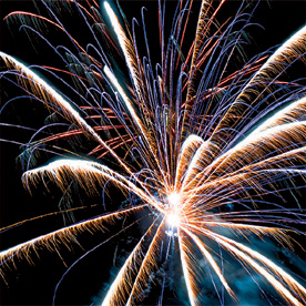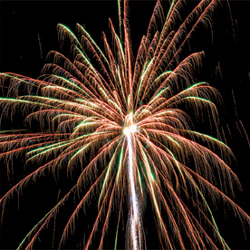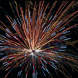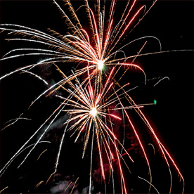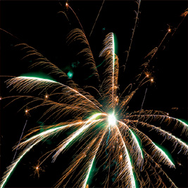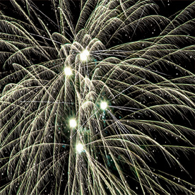 Разноцветные кометы разрываются сферами из: крупных красных и крупных голубых огней; красных, зеленых, золотых огней и золотых форсов с трещащими искрами; зеленых мерцающих огней и золотых форсов; красных, синих огней и множества трещащих сфер; красных огней и золотых форсов с серебряными искрами (залп); зеленых мерцающих огней и золотых форсов с шуршащими разлетающимися искрами (залп); красных мерцающих огней и золотых форсов (залп); крупных красных огней и золотых форсов с шуршащими разлетающимися искрами (залп).