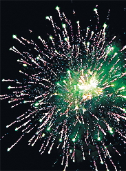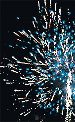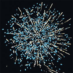 Разноцветные кометы, серебряные трассы разрываются сферами из: