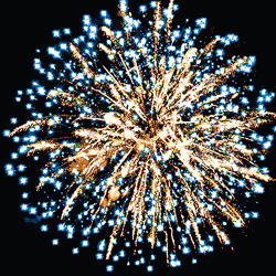 5-7. золотых трещащих форсов и красных, зелёных, синих огней.