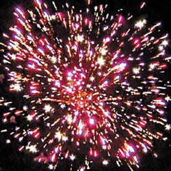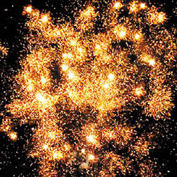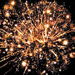 2. Фиолетовая сфера (пион) и облако золотого треска (трещащая хризантема).