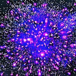 3. Множество серебряных ниспадающих нитей (парча) с фиолетовыми звездами на концах и треск.