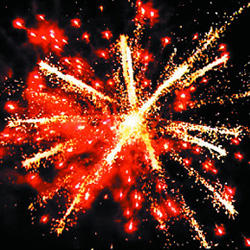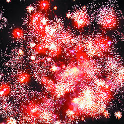 6. Красная сфера (пион) и облако треска (трещащая хризантема).
