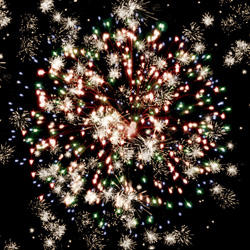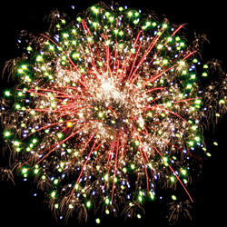 5-6. Мощная искрящаяся сфера: плотная россыпь серебряных искр и разноцветные всполохи синего, жёлтого, красного, зелёного и серебряного.