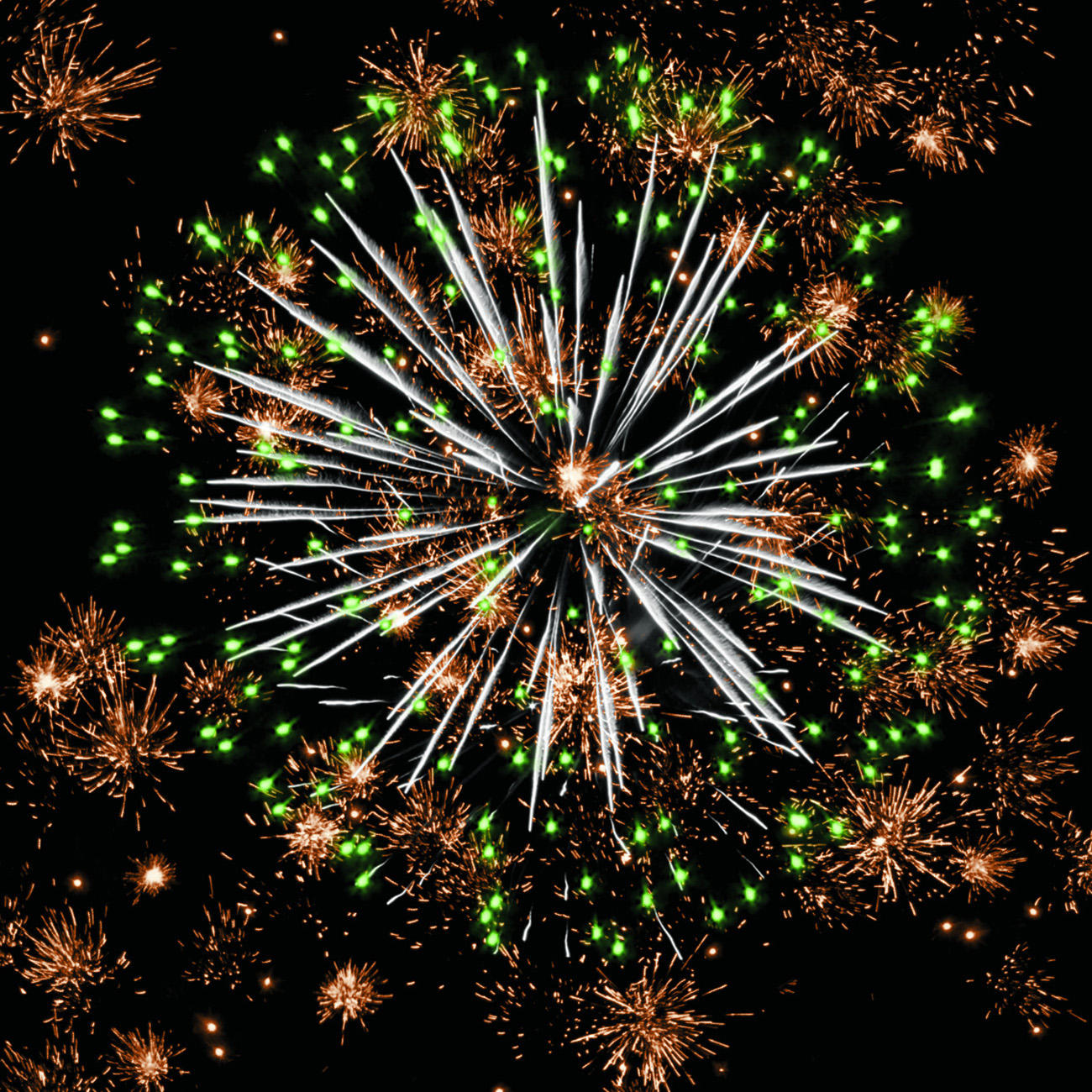 Изысканная батарея салютов в благородной цветовой гамме с акцентами на золотые и серебряные тона. Каждая сфера представляет собой сложную комбинацию мерцающих огней, искристых форсов и трещащих элементов, создавая элегантное и сбалансированное шоу.