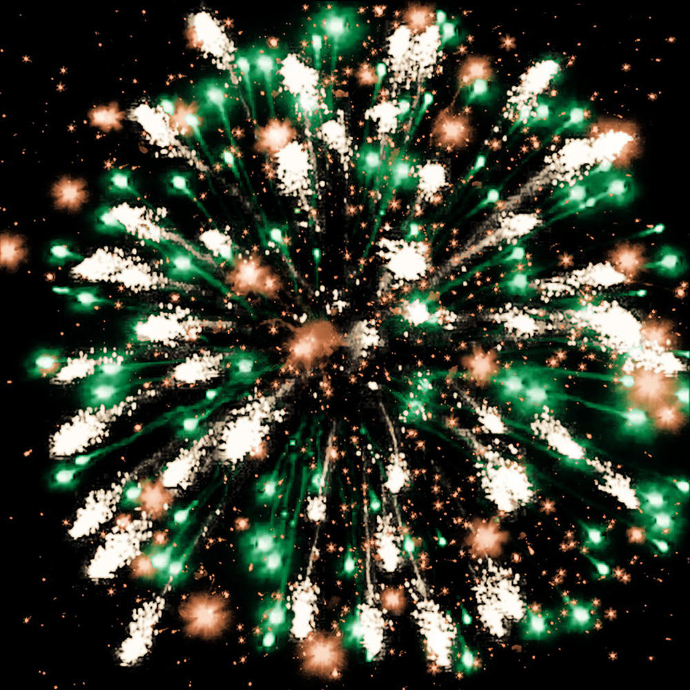 Батарея салютов с насыщенной цветовой палитрой и разнообразными текстурными эффектами. Сочетает благородные металлические оттенки с контрастными цветовыми акцентами, создавая сложные и гармоничные визуальные композиции.