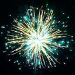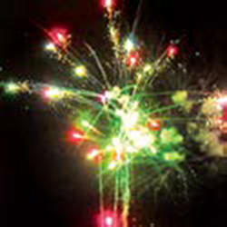 2. золотых мерцающих огней и серебряных форсов с зелеными огнями на концах в центре;