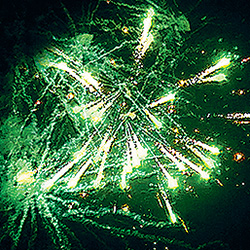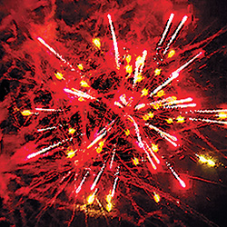 12 эффектов. 4 батареи в одной коробке. Батареи можно располагать в любой последовательности, соединив их по стрелкам с помощью посадочных мест на блоках. 1-й блок "Пальмы, треск и мерцание". Разноцветные кометы разрываются сферами из: