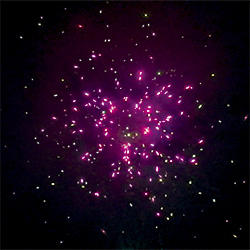 4 эффекта. Разноцветные кометы разрываются сферами из: красных и синих огней, фиолетовых и зеленых мерцающих огней, серебряных форсов и синих огней, красных огней и множества трещащих сфер.