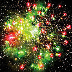 5. Красно- зеленая сфера (пион) и облако треска (трещащий дождь)