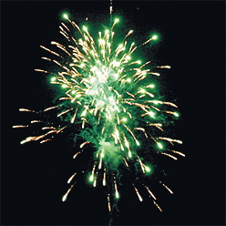 2. золотых искристых трещащих форсов и крупных зеленых огней,