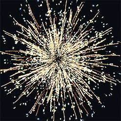 Разноцветные кометы, золотые искристые трещащие трассы разрываются сферами из: