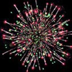 Разноцветные кометы, трещащие искристые трассы разрываются сферами из: красных огней и множества трещащих искр; золотых форсов и серебряных мерцающих огней; красных – зеленых огней с форсами и множества трещащих искр; золотых мерцающих форсов и синих огней; серебряных форсов и множества трещащих сфер. В конце залп.