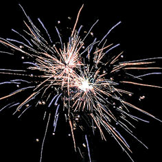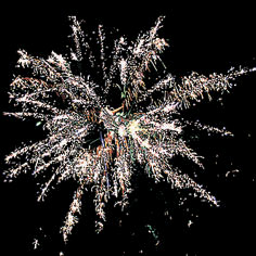 Комбинированный фейерверк: заряды калибром 25 мм и 40 (!) мм. Разрывы сине-зелеными и красно-синими сферами, серебристыми хвостами с треском, золотыми мерцающими хвостами и синими сферами. В конце мощный залп.