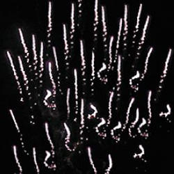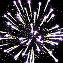 6-7. Выстреливает подряд: Свистящие змейки. Серебряные звезды с пышными трещащими хвостами (трещащий кокос) и облако треска (трещащая хризантема).