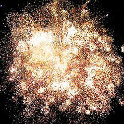 5. Фиолетовые звезды с пышными хвостами (кокос) и облако треска (трещащая хризантема).