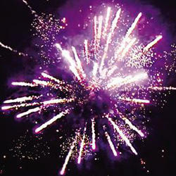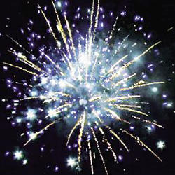 6. Фиолетовые звезды с пышными хвостами (кокос) и облако треска (трещащая хризантема).