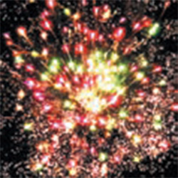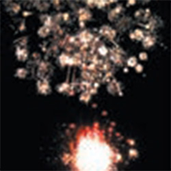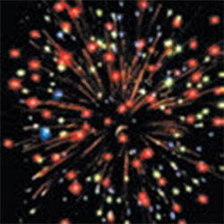 7. Сфера золотых нитей с переходом в красные, фиолетовые, синие, зеленые звезды (цветная хризантема) и золотое мерцание.