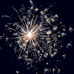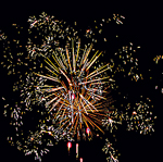 Разноцветные кометы разрываются серебряными трещащими облаками с мерцающими золотыми звездами.