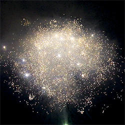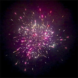 5 эффектов. Разноцветные кометы разрываются сферами из: оранжевых и зеленых мерцающих огней, красных и белых мерцающих огней, серебряных форсов с красными и зелеными огнями на концах, серебряных искристых форсов и зеленых огней, красных и трещащих огней.