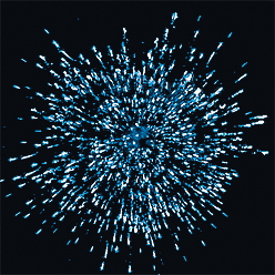 Разноцветные кометы, серебряные трассы разрываются сферами из: