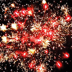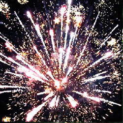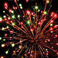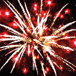10. ЗАЛП: Красные звезды с пышными хвостами (кокос) и облако треска (трещащая хризантема)