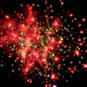 Зеленые искристые звезды и красное мерцание. Золотые хвосты с золотым мерцанием. Красные, синие, зеленые, желтые звезды. Комета разрывается синими звездами с белым мерцанием. Комета разрывается красными звездами с зеленым мерцанием. Золотые шуршащие хвосты с красным мерцанием. Красочная концовка: искристые кометы, зеленые и красные звезды, шуршащие хвосты.