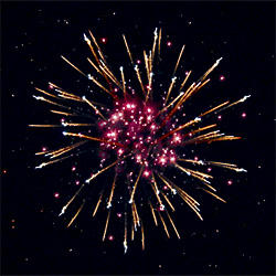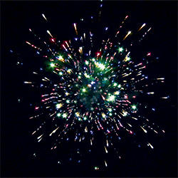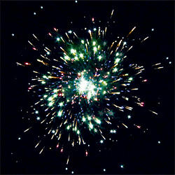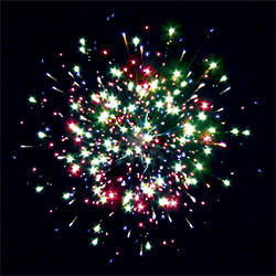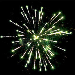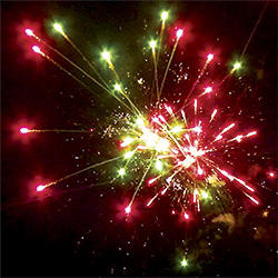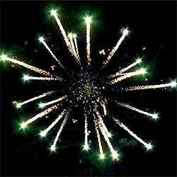 9 эффектов. Разноцветные кометы разрываются сферами из: зеленых, синих и красных мерцающих огней, красных, синих и белых мерцающих огней, серебряных форсов, зеленых мерцающих и фиолетовых огней, серебряных форсов с красными огнями на концах и трещащих огней, серебряных форсов с зелеными огнями на концах и трещащих золотых огней, зеленых, красных, синих и трещащих огней, серебряных форсов с зелеными огнями на концах и золотых мерцающих огней, золотых форсов с серебряными искрами и красных мерцающих огней, множества трещащих сфер, красных и зеленых огней.