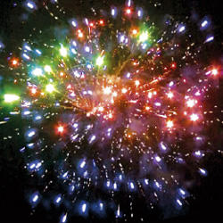 1. Красные звезды с пышными хвостами (кокос) и облако треска (трещащий дождь)