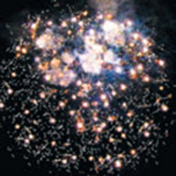 1. Красные звезды с пышными хвостами (кокос) и белое мерцание.
