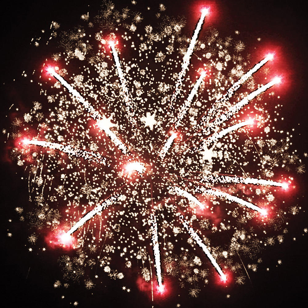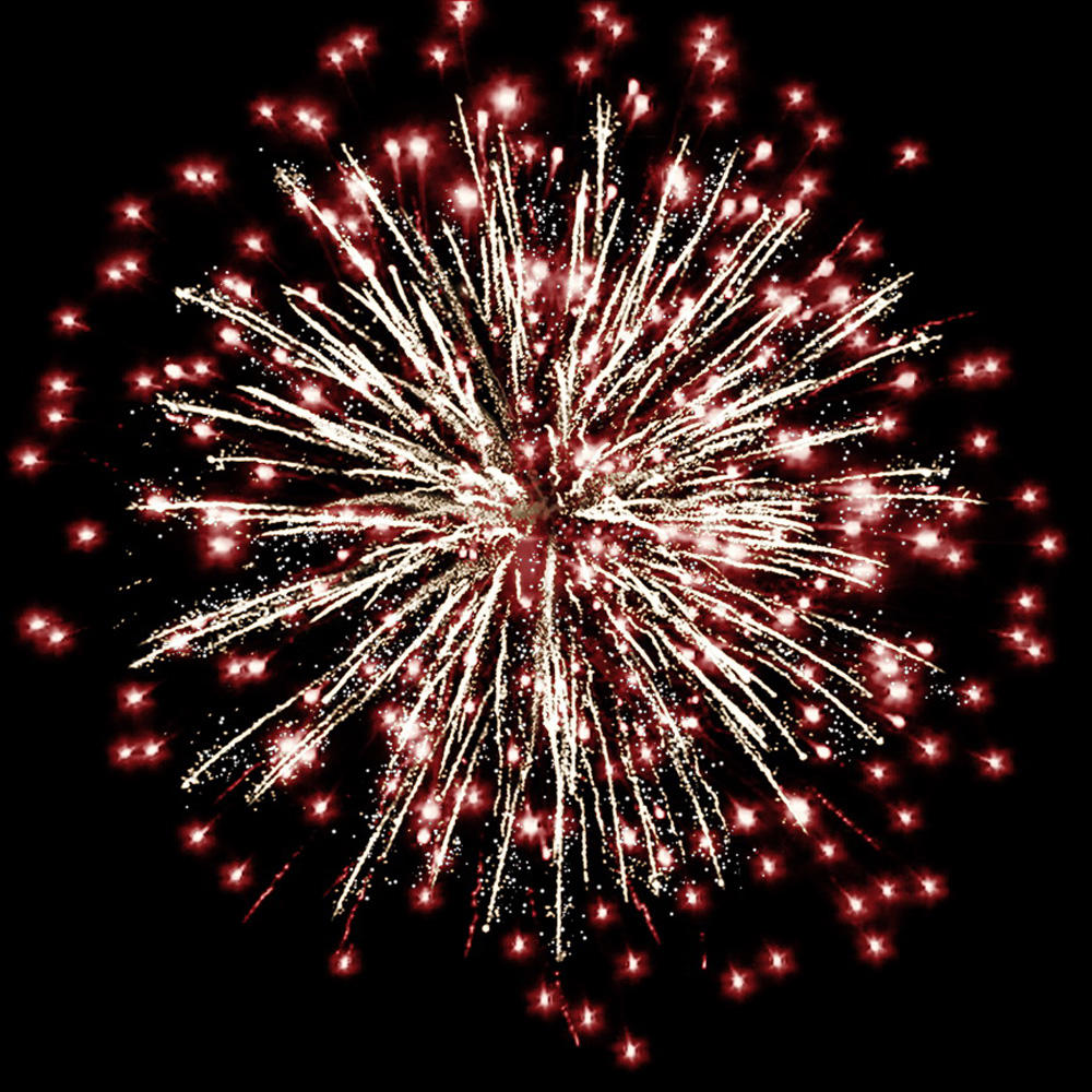 9. золотых форсов с белыми мерцающими искрами и красных огней.