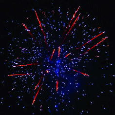 Цветные кометы разрываются серебряными хвостами, белыми золотыми кометами, сферой фиолетовых звезд и золотыми кометами. Белая звезда с мерцающим хвостом разрывается трещащими кометами. Залпы цветных комет разрываются сферами серебристых хвостов, золотых комет, сферами фиолетовых звезд и золотыми кометами. Залп трещащих звезд с золотыми хвостами разрывается большой сферой золотых трещащих хвостов с мерцанием.
