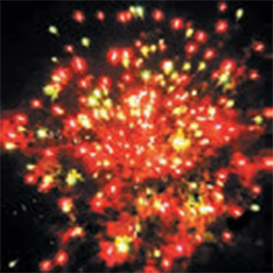 2. Серебряные звезды с пышными хвостами (кокос) и облако трещащих разрывов (трещащий дождь).