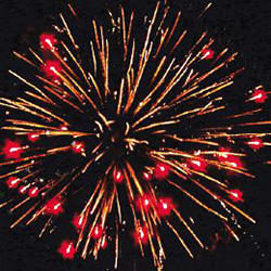 4. Сфера золотых хвостов с переходом в красные звезды (цветная хризантема).