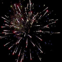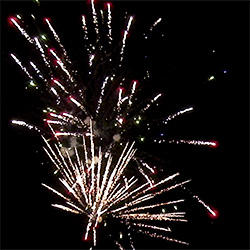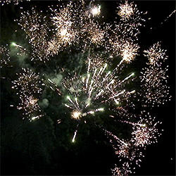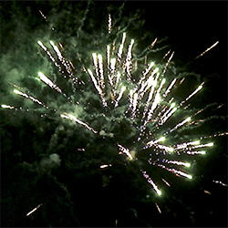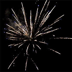 4 эффекта. Разноцветные кометы, золотые трассы разрываются сферами из: зеленых и красных огней с серебряными форсами, золотых форсов и синих огней, трещащих и красных огней с серебряными форсами, зеленых огней с форсами и множества трещащих сфер.