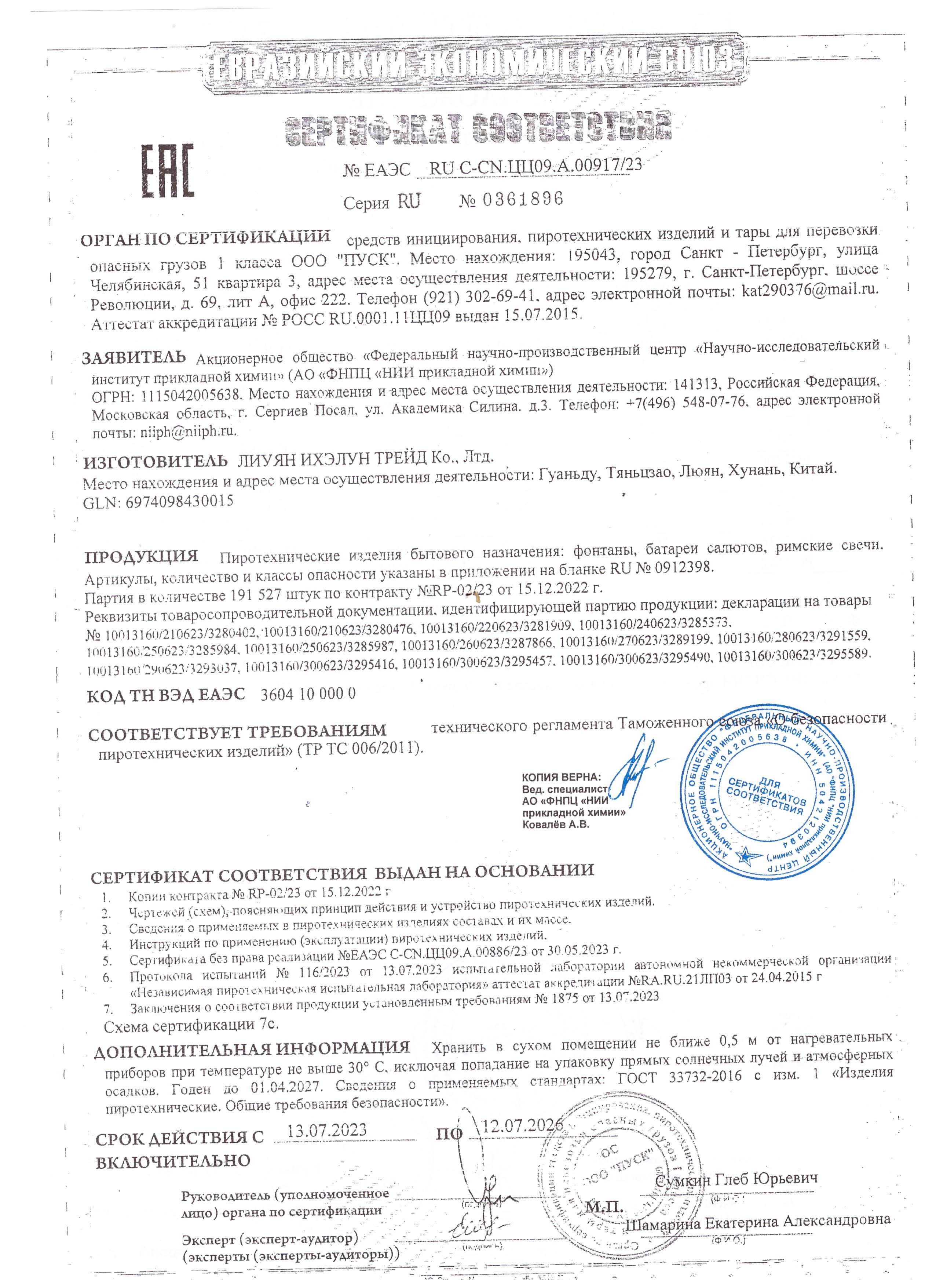 Уникальный фейерверк, создающий объемное представление на двух уровнях одновременно. Нижний ярус работает как яркий фонтан, в то время как верхний уровень раскрывается россыпью огней и сферами.