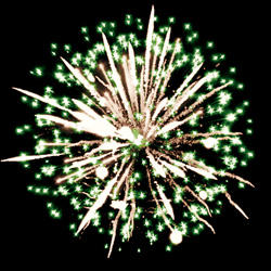 3 эффекта: Разноцветные кометы разрываются сферами из серебряных искристых форсов и: